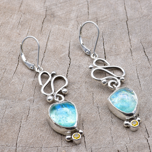 Regular price $135.00 USDRegular priceUnit price / per$135.00 USDSale price $135.00 USDSold outArtistic fused dichroic glass earrings in hand crafted settings of sterling silver accented with gold (E929)